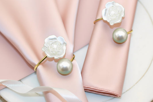 Argolas Porta-Guardanapo com Flor e Pérola (Kit com 6 ou 12 Unidades) Deixe sua mesa...
