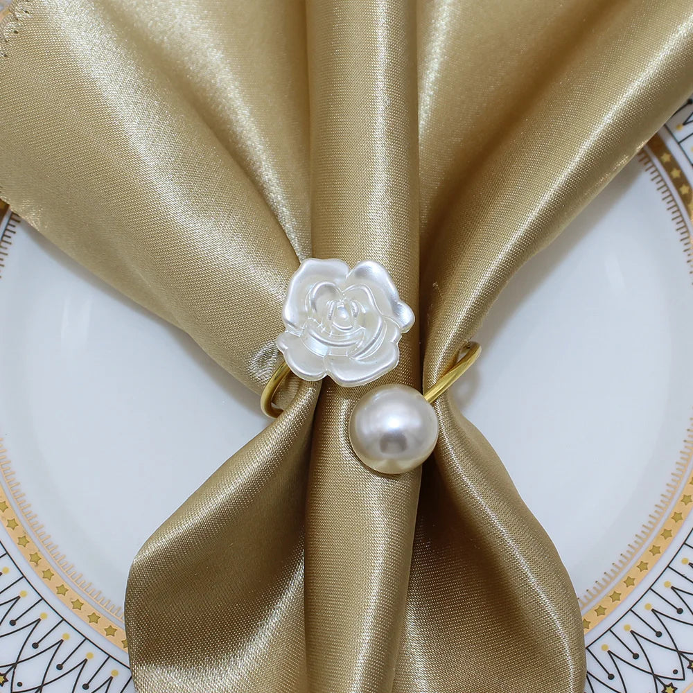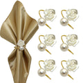 - 1 kit com 6 ou 12 argolas porta-guardanapo com flor e pérola (guardanapos não inclusos).